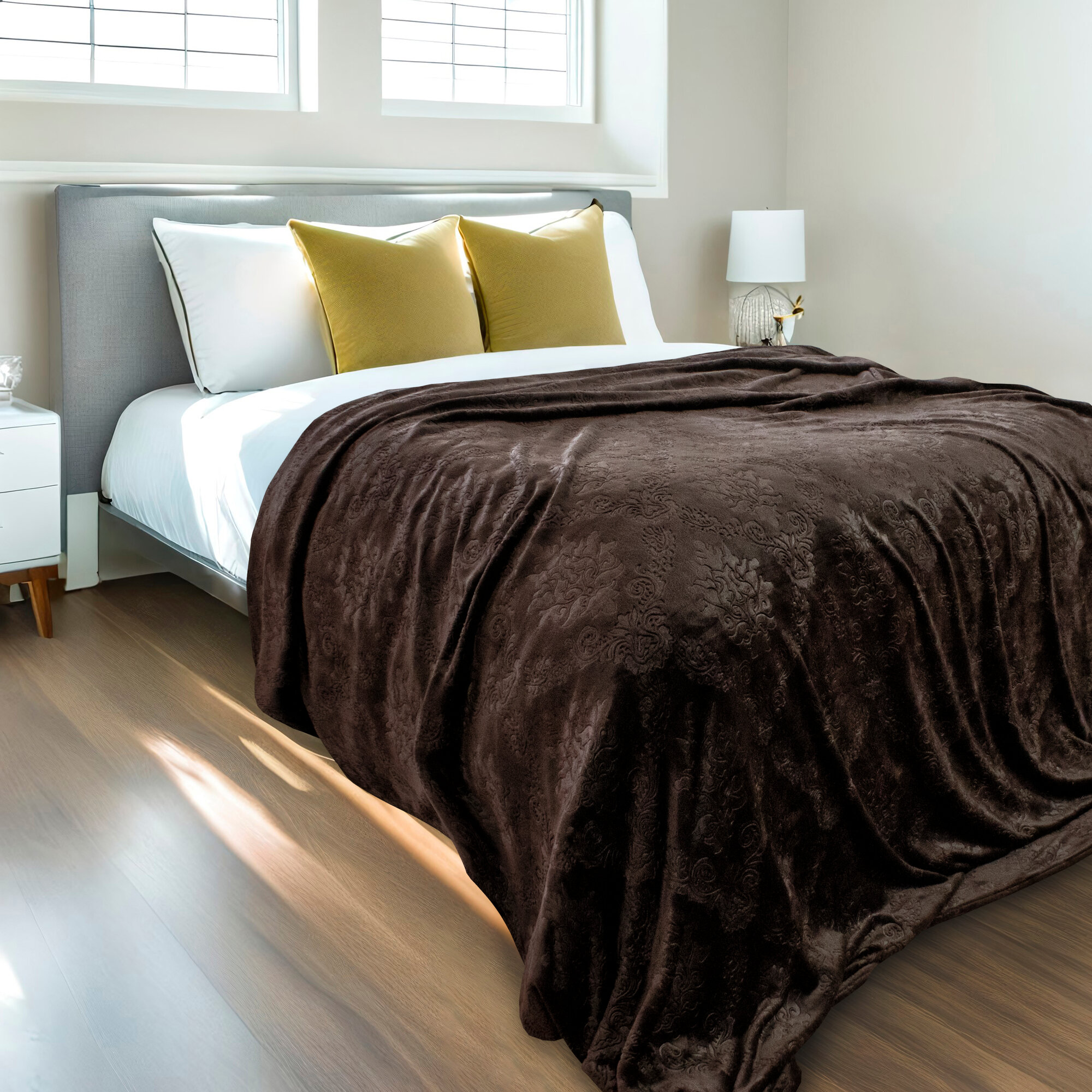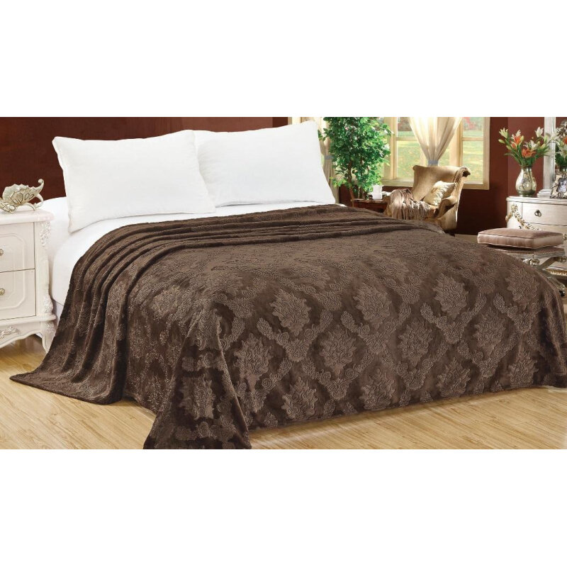 Плед двуспальный евро 200х220 темный шоколад, покрывало на кровать и диван Cleo Parma, пушистый с рисунком, велсофт