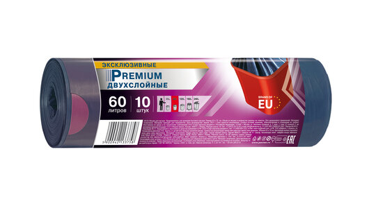 Мешки для мусора Premium 60 л, 10 шт., Paclan