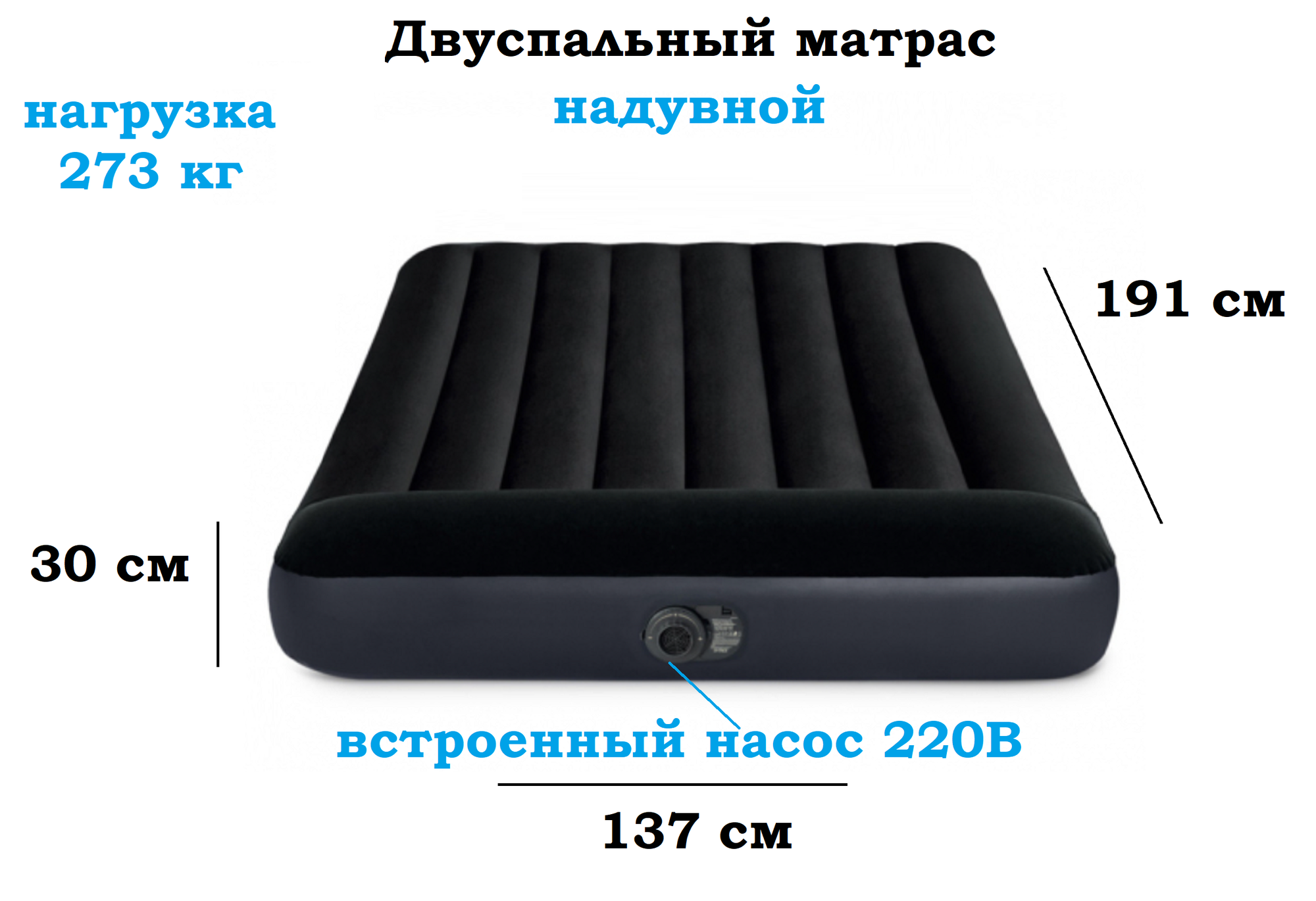 Купить INTEX 1.37m x 1.91m x 25 cm в комплекте с электронасосом Арт. 64148NP