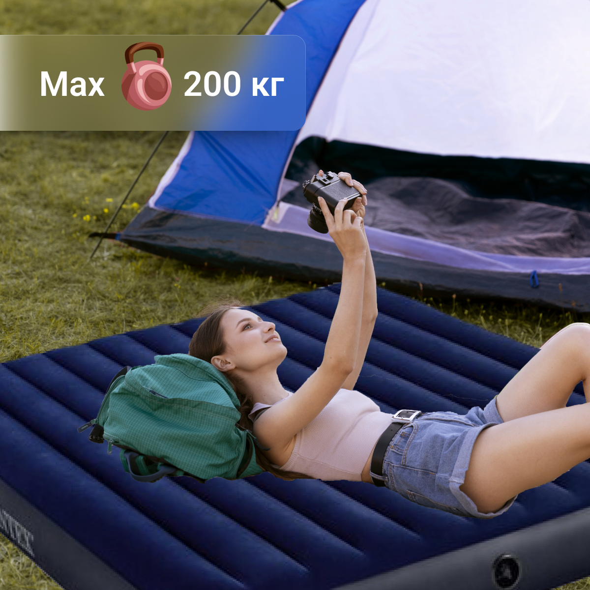 Брал в палатку для кемпинга. Справился на ура, в 3х местной палатке 2 взрослых и подросток, выдержал норм. 10 дней подряд, даже не подкачивал. Казалось что матрас чуть больше указанных размеров. Так как палатка 210х210 а матрас её немного расперал. В общем рекомендую. |