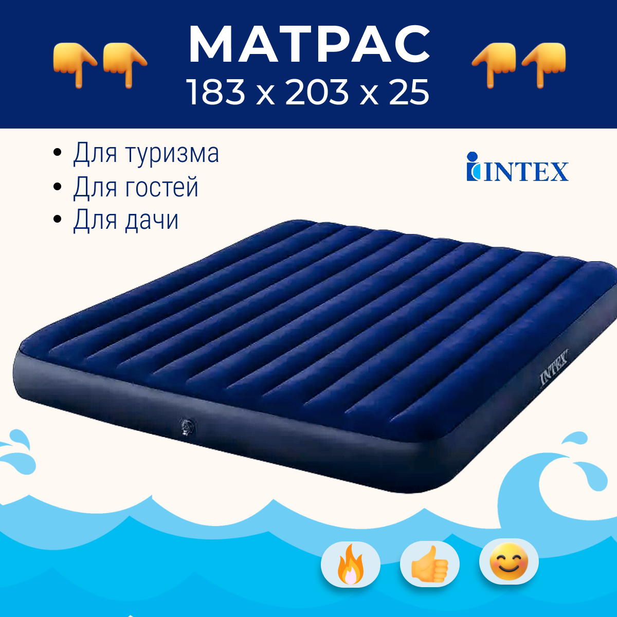Сохранить"Надувной матрас Intex" 183*203*25, арт 64755 интересное: