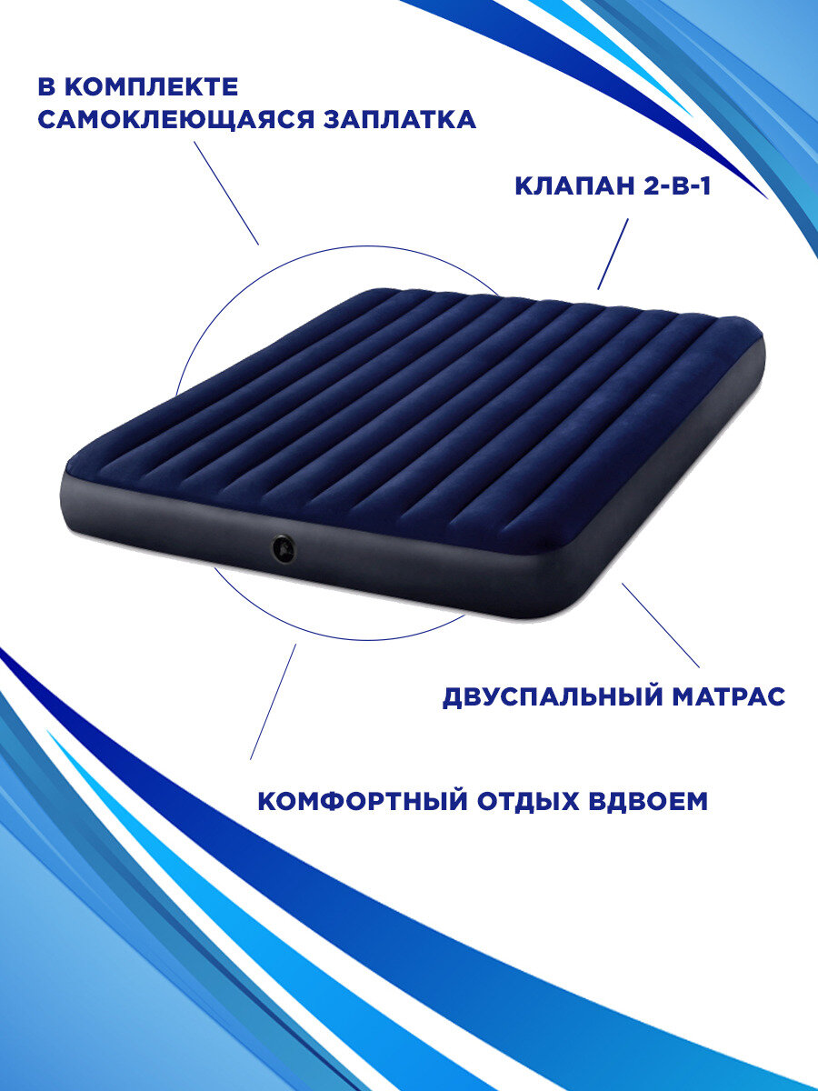 Надувной матрас Classic Downy 183х203х25см, Intex 64755