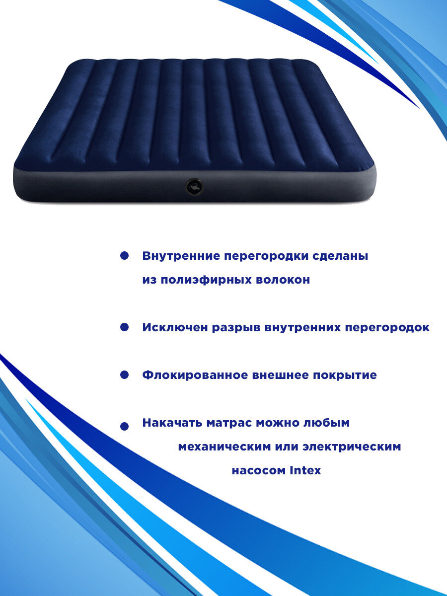 Надувной матрас Intex Classic Downy Airbed Fiber-Tech 183х203х25см 64755