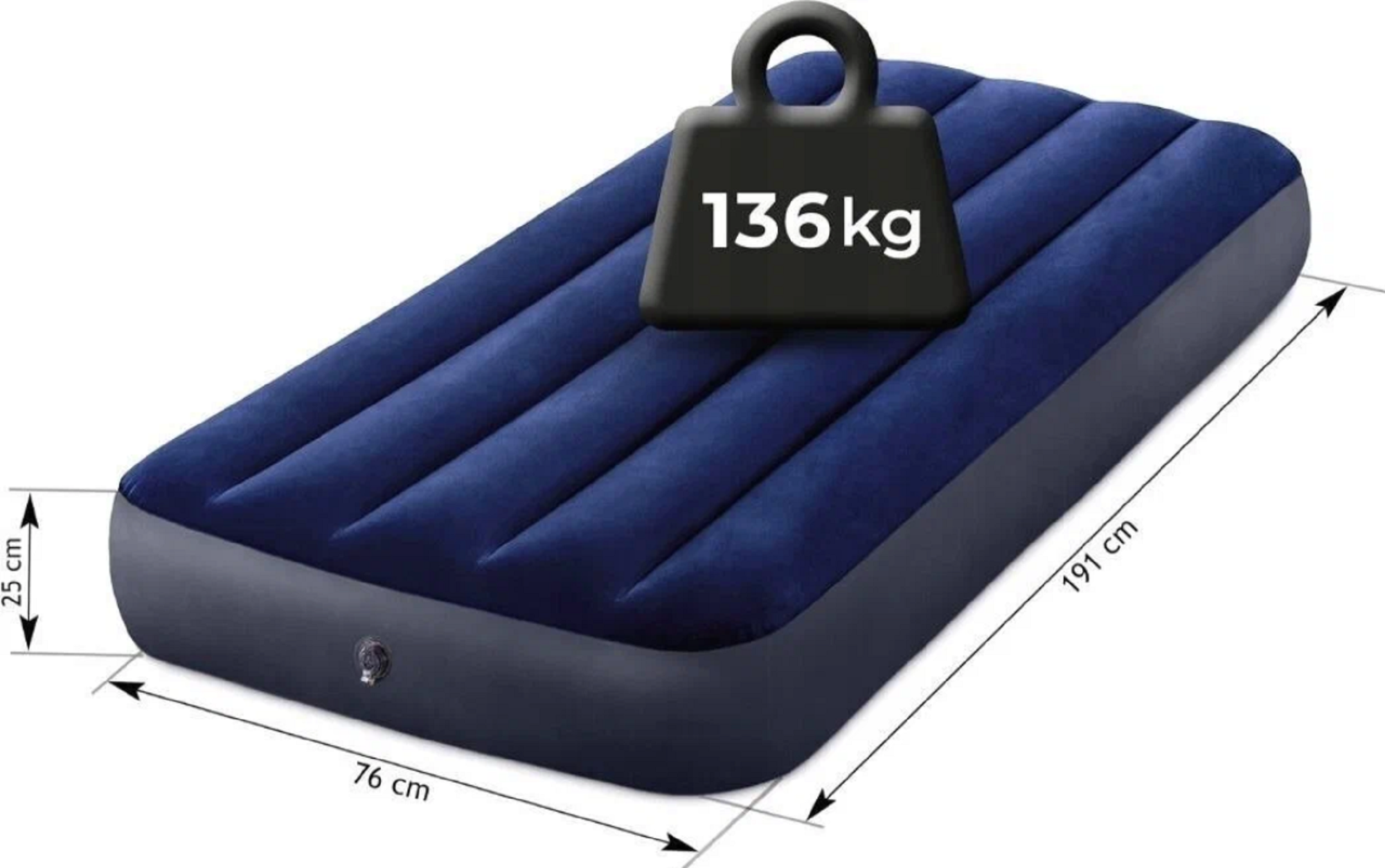 Надувной матрас со встроенным ножным насосом, Надувной матрас до 136кг, 76х191х25см