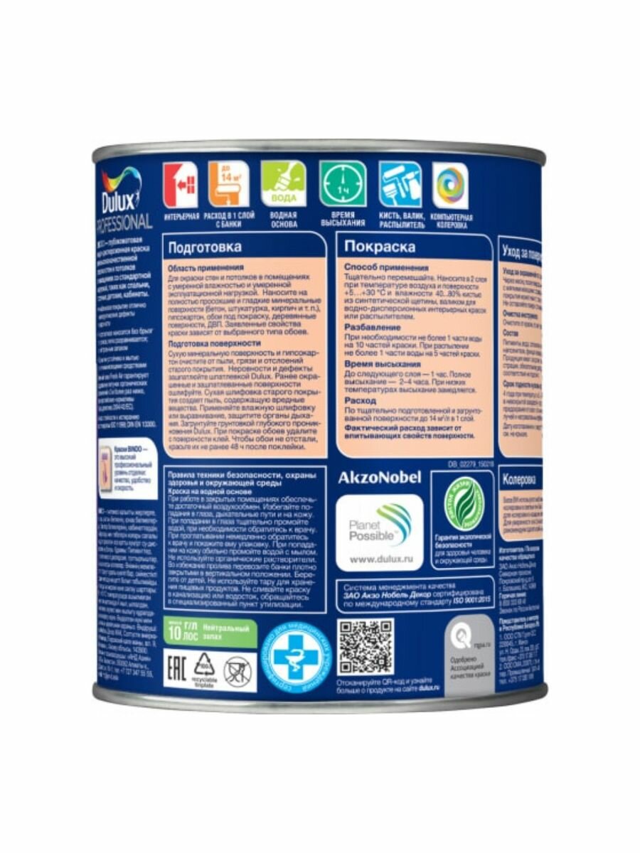 Краска DULUX PROF. DIAMOND BW матовая 2,5 л
