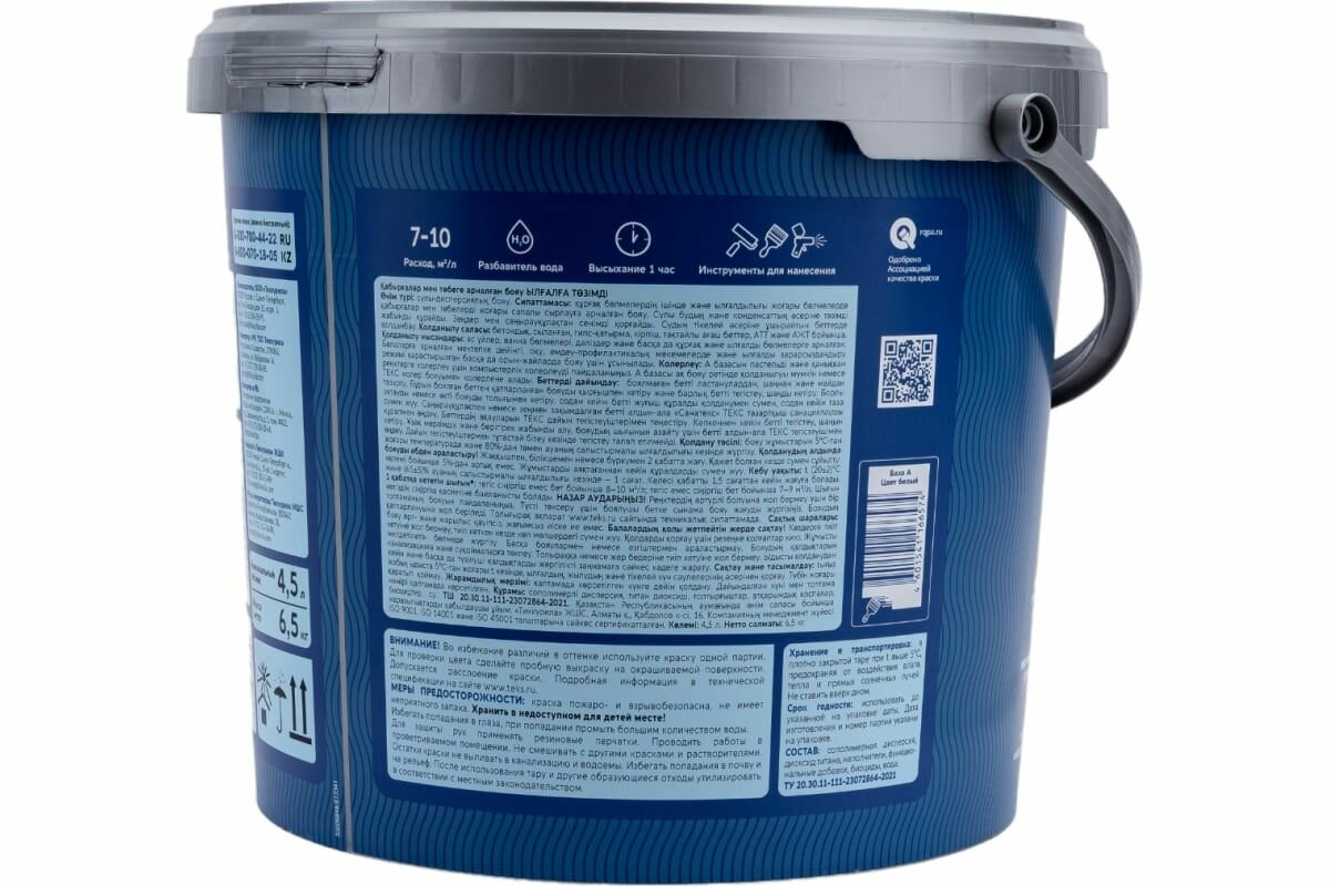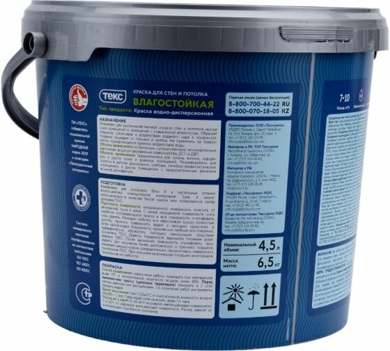 Текс Моющаяся база А белая краска в/д (0,9л) профи / текс Моющаяся base A краска для стен и потолков в сухих и влажных помещениях (0,9л) класс профи