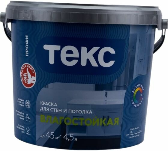 Текс профи моющаяся краска для стен и потолков (глубокоматовая, база A, 4,5л)