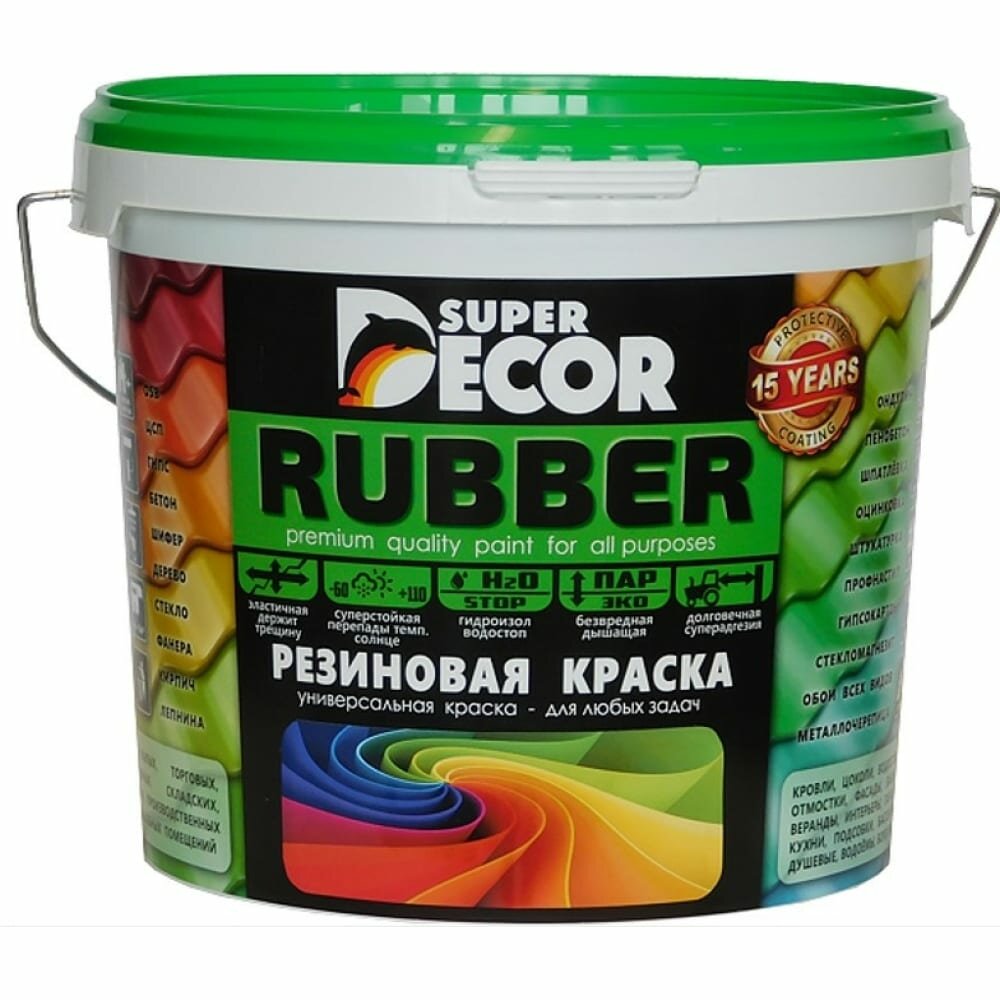 Резиновая краска Super Decor Rubber №14 Изумруд 12 кг, матовая краска без запаха, для бетона, дерева, фасада