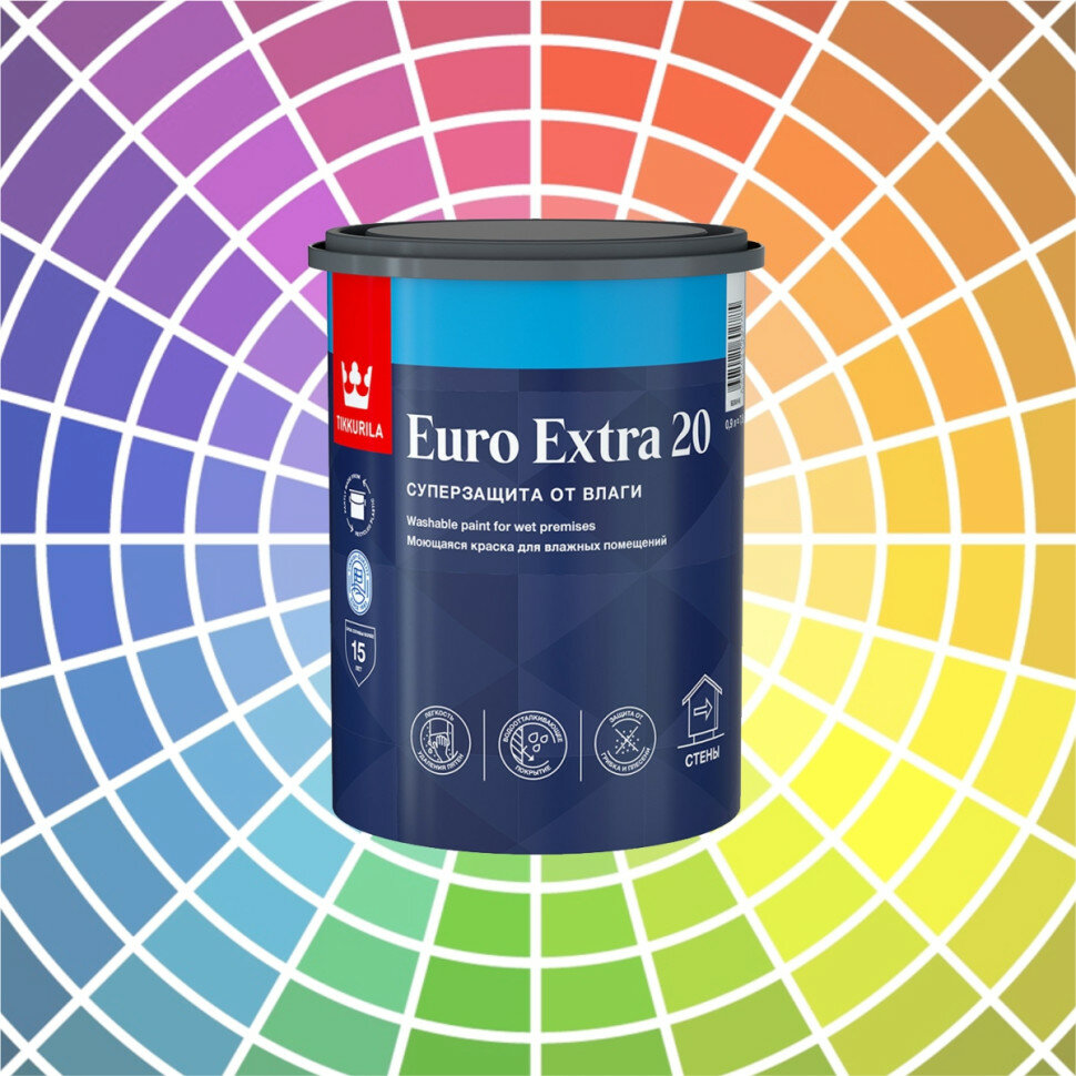 Tikkurila Euro Extra 20 / Тиккурила Евро Экстра 20 полуматовая краска для влажных помещений база А 0,9л