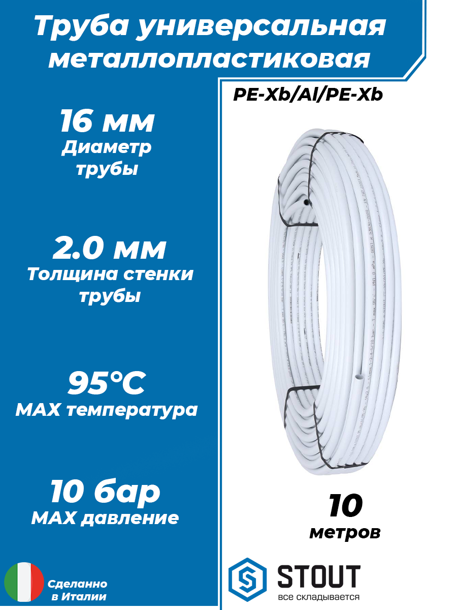 Труба металлопластиковая STOUT - 16x2,0 (PE-Xb/AL/PE-Xb, PN10, бухта 16м)