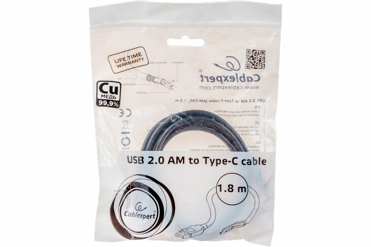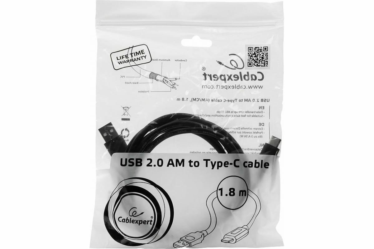 СохранитьКабель Cablexpert USB - USB Type-C (CCP-USB2-AMCM-6), 1.8 м, черный интересное: