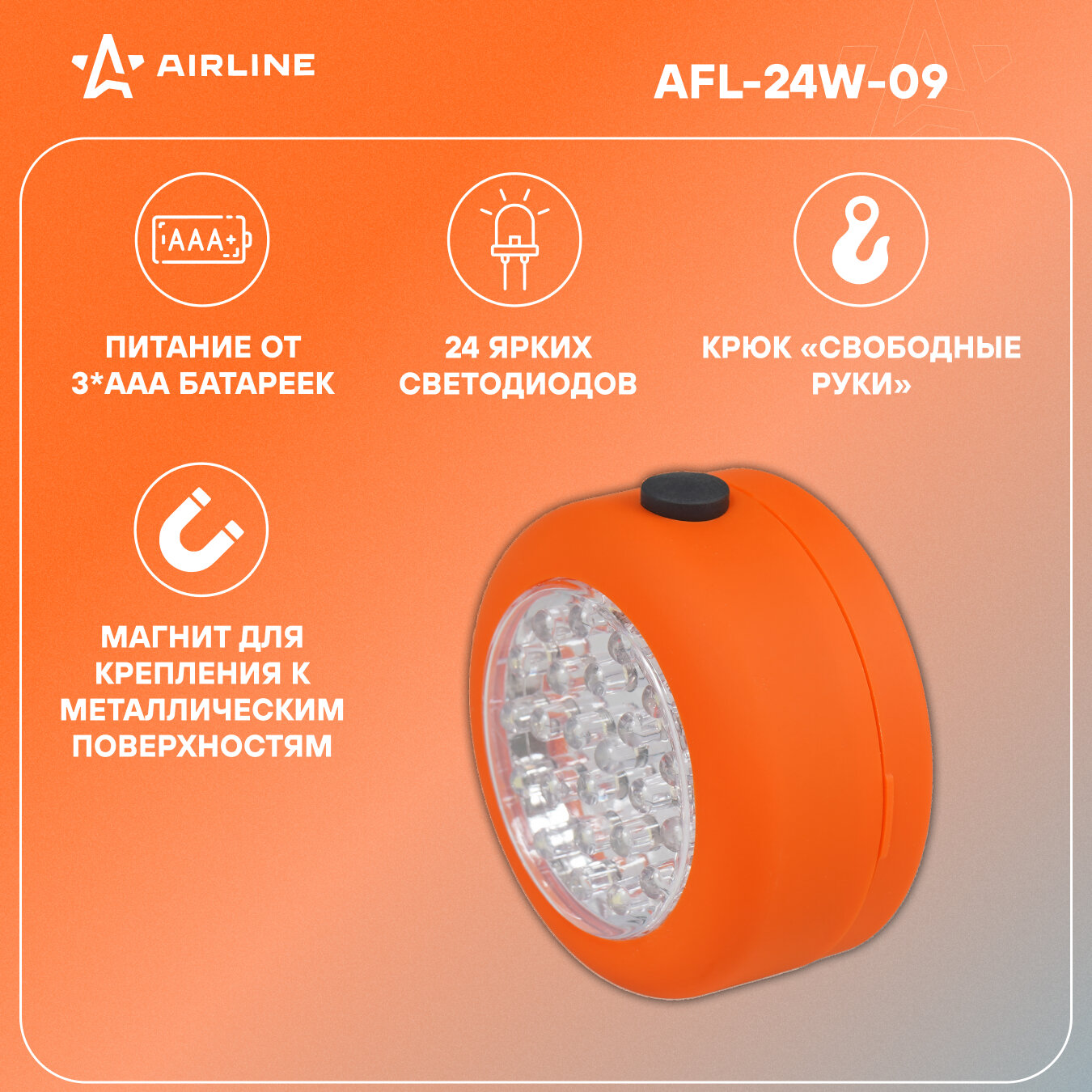 Фонарь-переноска Airline AFL-24W-09, LEDx24, на батарейках 3xAAA, с крюком и магнитом