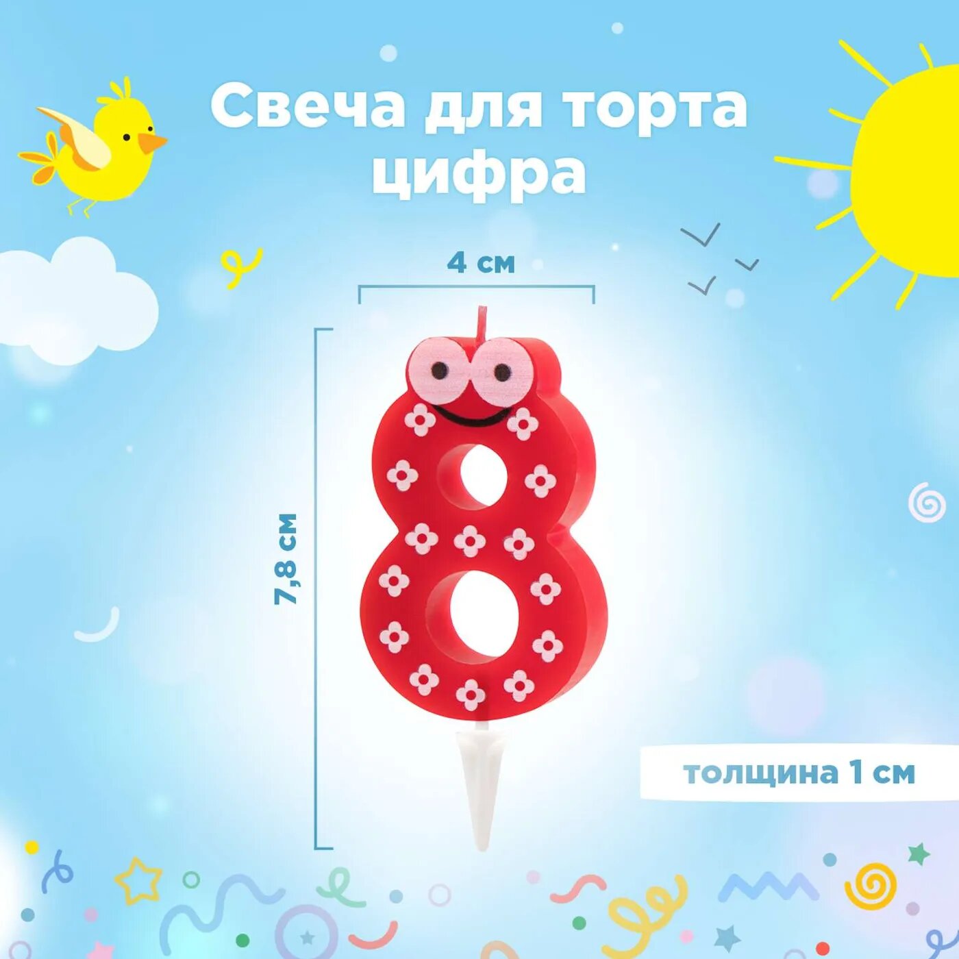 Свеча для торта "детская", PATERRA, цифра 8 (401-529)
