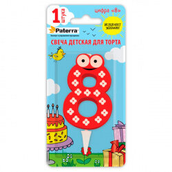 Свеча детская для торта PATERRA, цифра 8 (1шт.в упаковке)