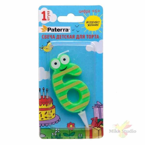 Свеча детская для торта PATERRA, цифра 6 (1шт.в упаковке)