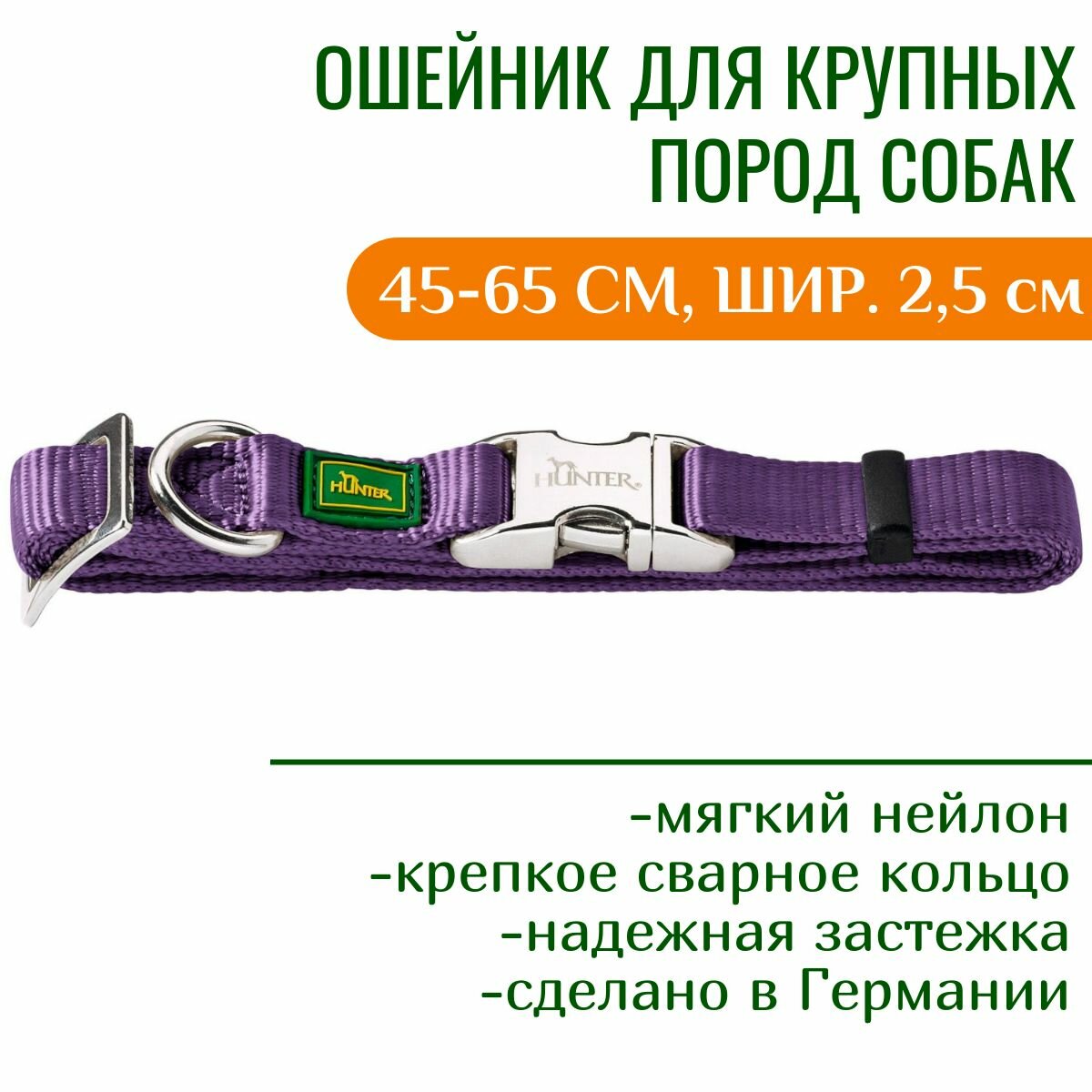 Hunter ошейник для собак ALU-Strong L/25 нейлон металлической застежкой фиолетовый .