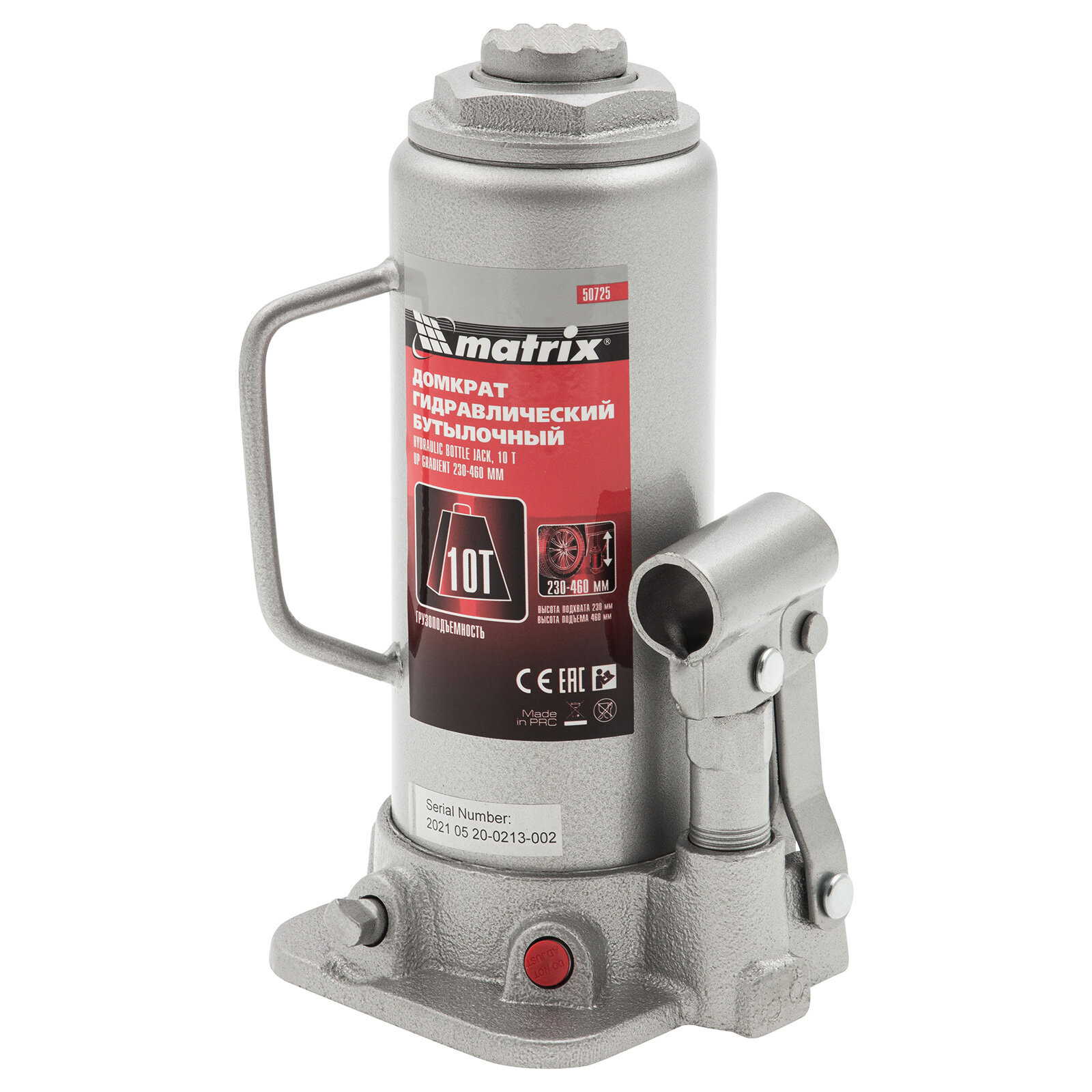 Купить 50725 MATRIX 50725_домкрат! гидравлический бутылочный, 10т, h подъема 230-460мм\