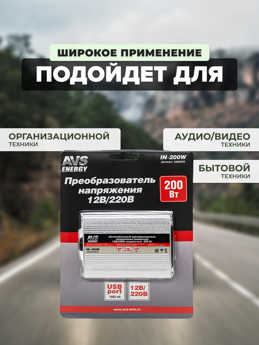 Автомобильный Инвертор 12220 200 AVS арт. A80683S