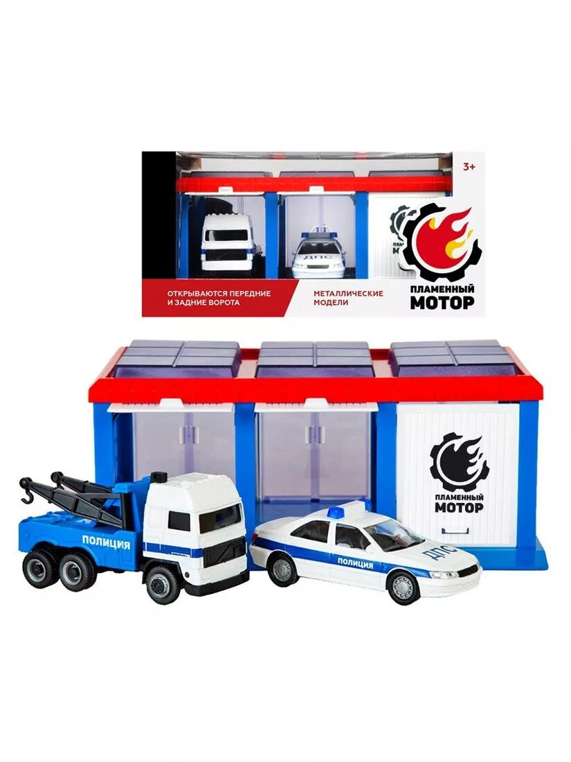 Пламенный мотор игровой набор Гараж Полиция ДПС (с машинкой и эвакуатором)