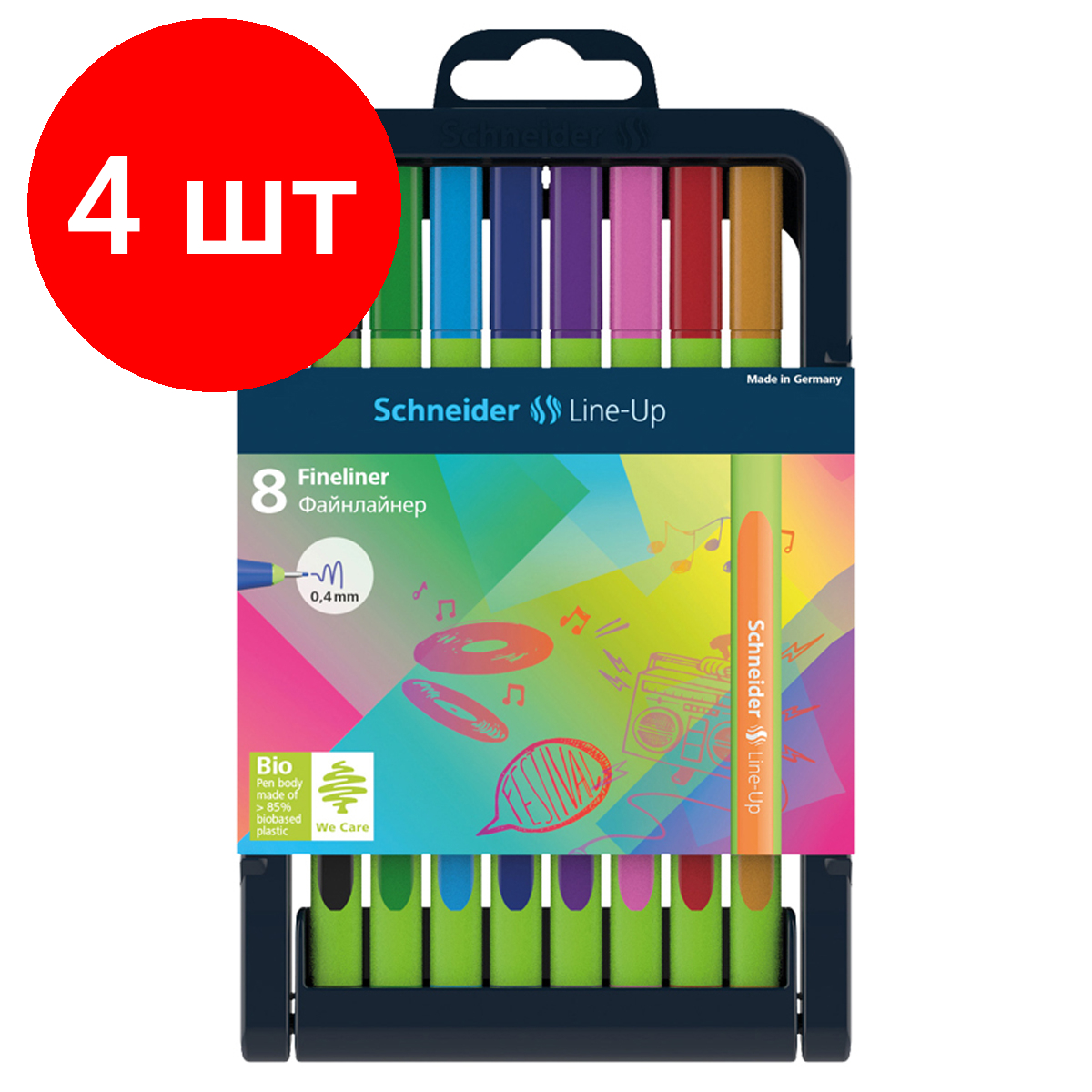 Купить Комплект 4 шт, Набор капиллярных ручек Schneider "Line-Up" 08цв., 0.4мм, европодвес