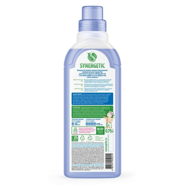 Моющее средство Synergetic Сила океана, для мытья пола и поверхностей, 0,75 л (4607971450214)