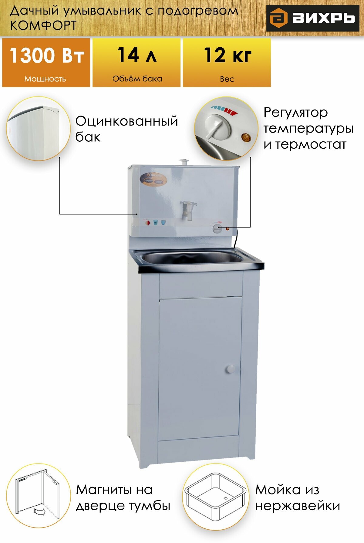 Умывальник дачный с подогревом комфорт вихрьбелый