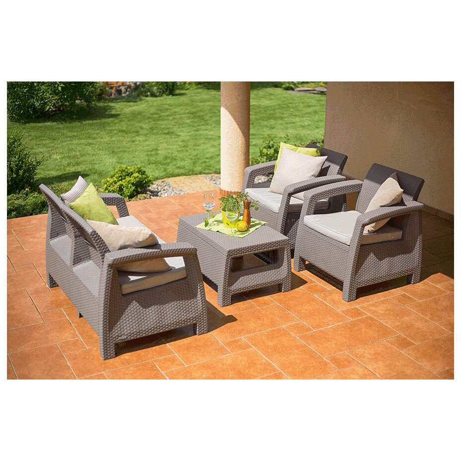 Купить Комплект садовой мебели Keter Corfu Set 227640В (стол, 2 кресла, диван), капучино