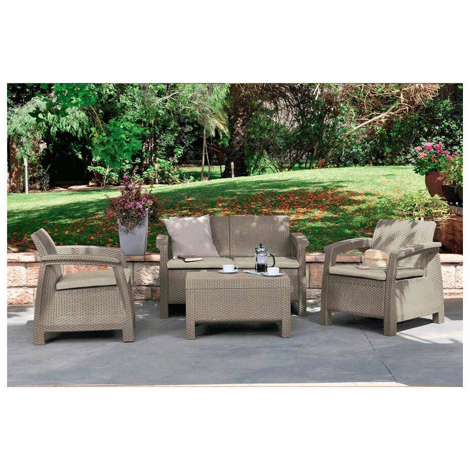 Комплект садовой мебели Keter Corfu Set (стол, 2 кресла, диван), капучино