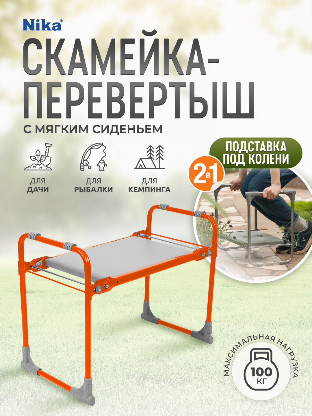 Nika Скамейка-перевёртыш садовая складная 56х30х42,5 см, оранжевая, максимальная нагрузка 100 кг