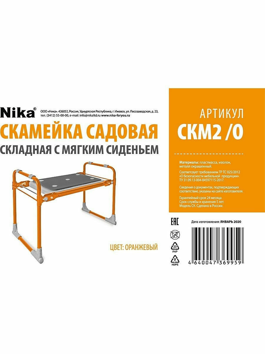 НИКА ООО Скамейка садовая складная Nika, пластиковое сиденье, 56 x 30 x 42,5 см, оранжевая
