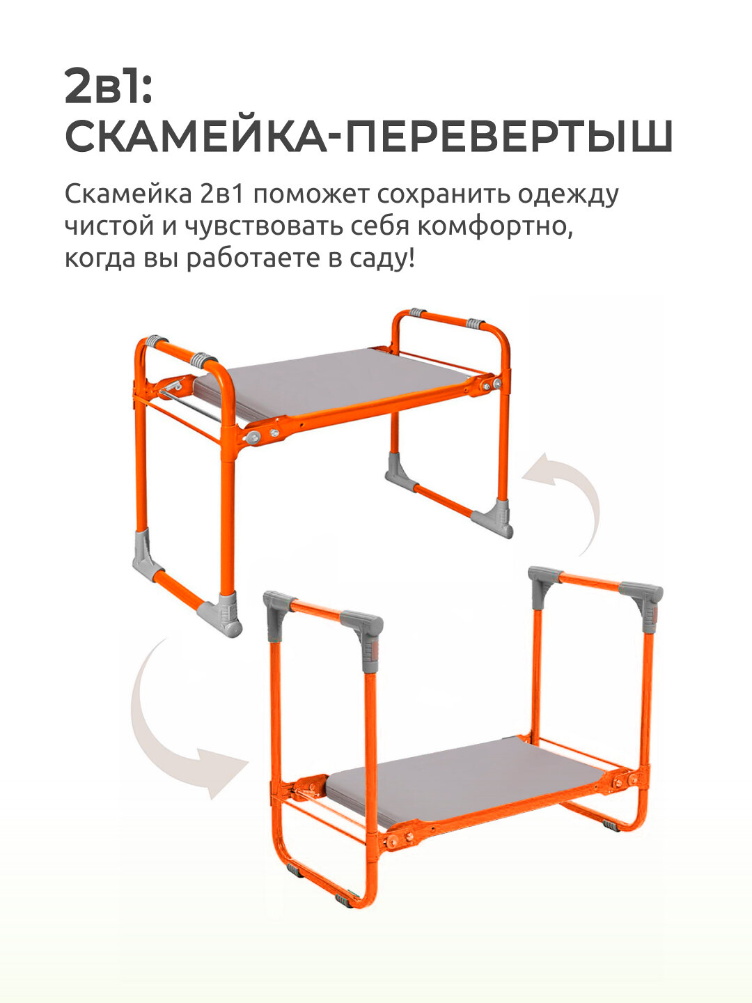 Скамейка-перевёртыш садовая складная 56х30х42,5 см, оранжевая, максимальная нагрузка 100 кг