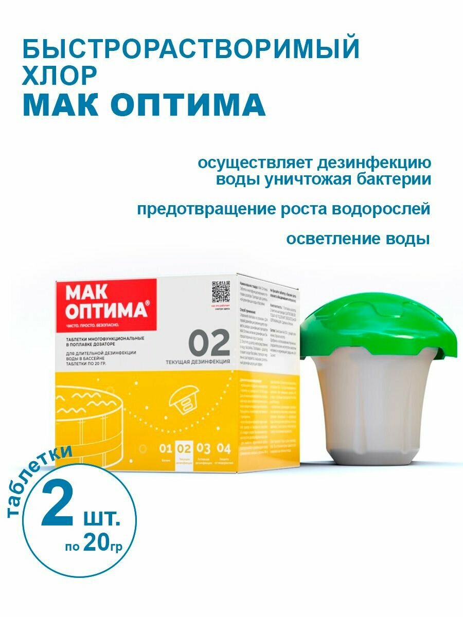 Средство для бассейна МАК Оптима таблетки 2х20г в поплавке-дозаторе