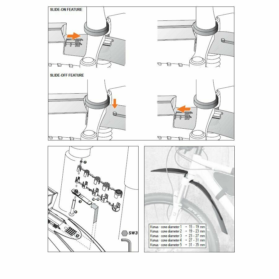 | Отзыв: | Инструкция на русском в комплекте, понятное и простое крепление с большим набором деталей - одних переходников круглых 5 штук разных размеров - действительно подойдёт практически к любой вилке с амортизатором. Ключ также в комплекте. Словом, отличное, качественное крыло. И смотрится стильно. Рекомендую. |