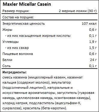 | Минусы: | Акромя казеина, присутствует сахар (правда 1 гр на порцию) и ещё куча всего вплоть до пальмового масла |