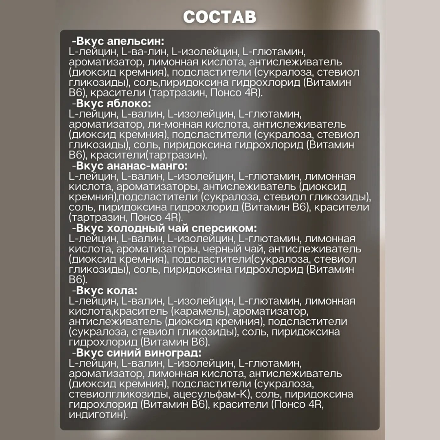 | Основной ингредиент | валин |