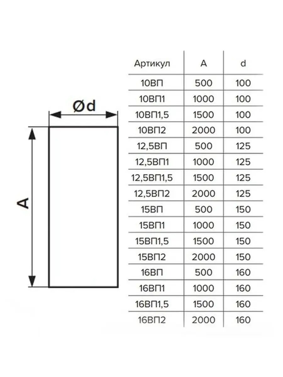 16ВП2, Воздуховод круглый ПВХ D160, L-2м