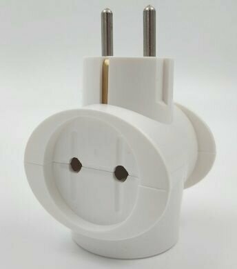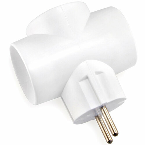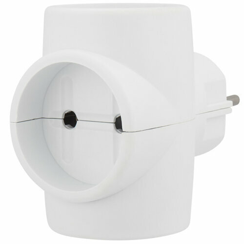 Тройник для розетки электрический с заземлением 16А, белый
