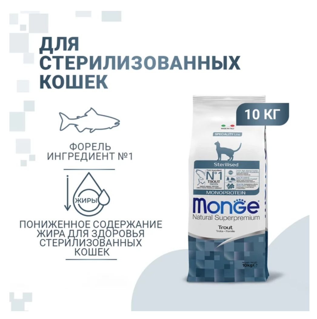 Monge Cat Monoprotein Sterilised корм для стерилизованных кошек всех пород, форель 10 кг