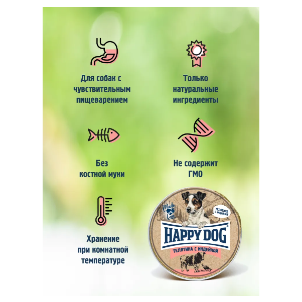 Купить Happy dog Паштет для собак Телятина с индейкой 0,125 кг 51207 (10 шт)