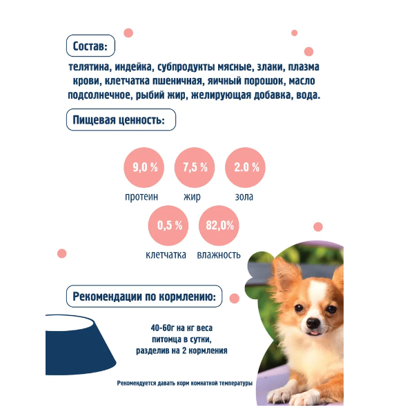Паштет для собак Телятина с индейкой