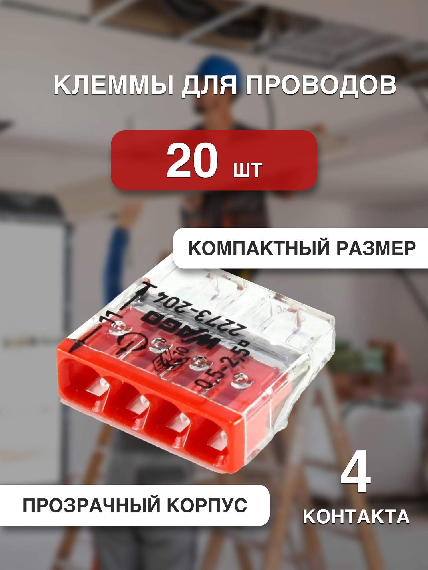 Cоединительная клемма 4-х проводная (2273-204), 20 шт