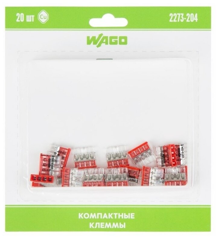 WAGO Соединительная клемма WAGO 4-х проводная (2273-204) 6 шт. в блистере