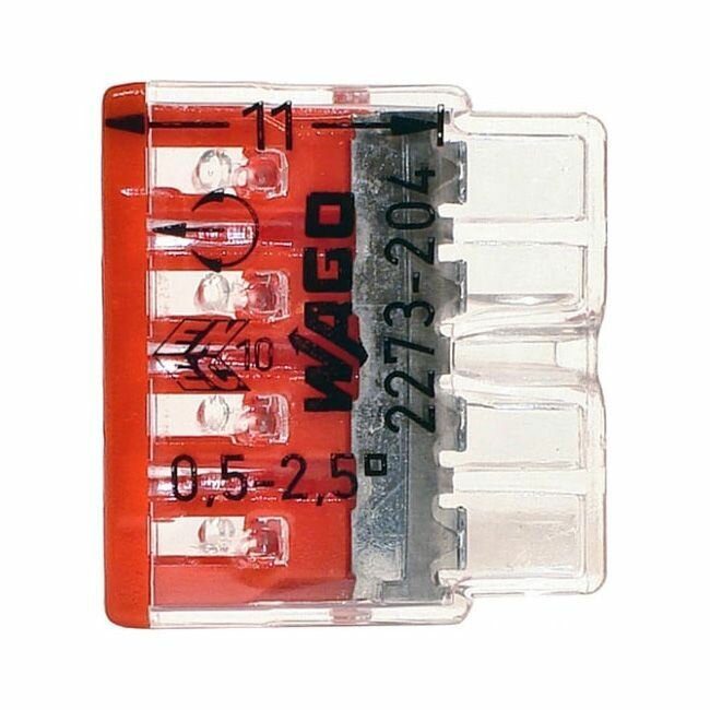 Клемма 4-проводная 0.5-2.5мм2 одножильный красный (уп/100шт) | 2273-204 | WAGO
