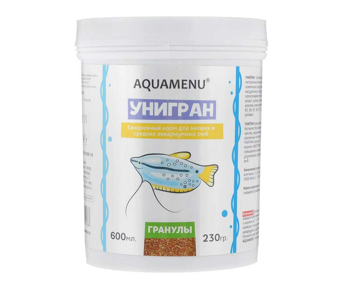 Корм Аква Меню AQUAMENU Унигран для мелких и средних аквариумных рыб 600 мл. (230г)