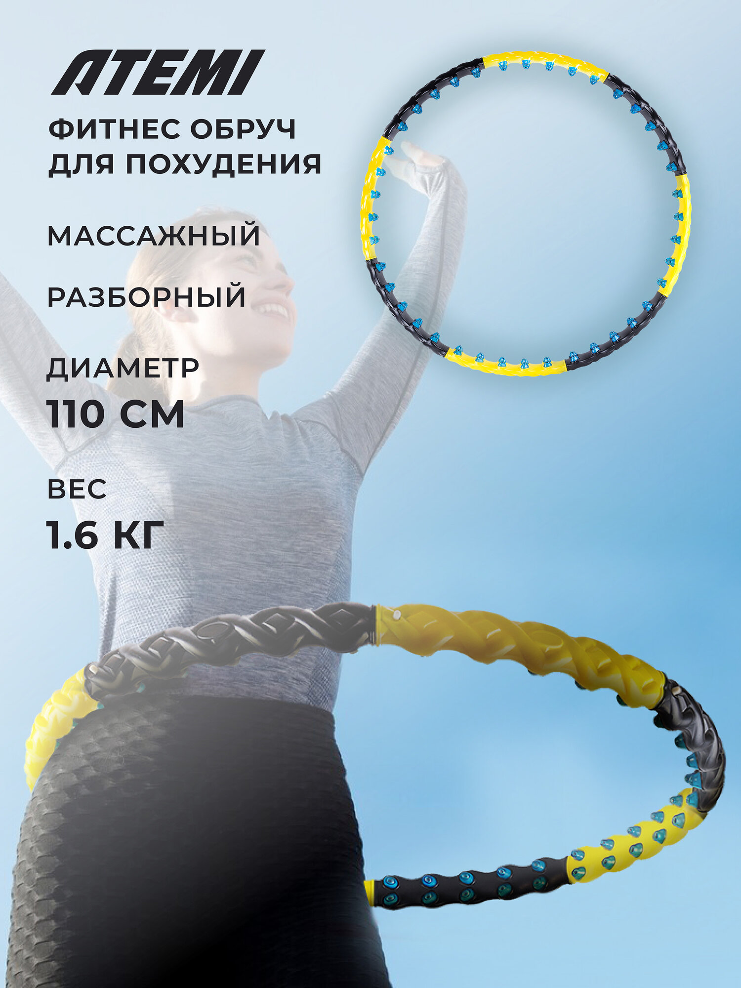 Обруч хулахуп массажный разборный магнитный гимнастический для похудения фитнеса Atemi, AWH160, 110х4,7 см, 1,6 кг интересное: