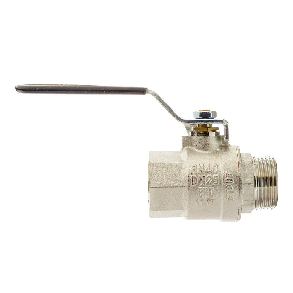 Кран шаровой полнопроходной STOUT - 1" (НР/ВР, PN40, Tmax 150°С, ручка-рычаг черная)