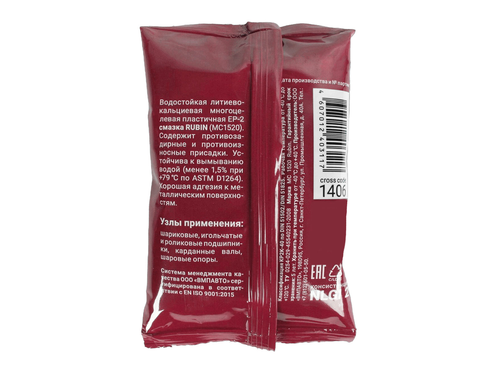 Смазка литиево-кальциевая многофункциональная МС-1520 RUBIN EP2, 400г стик-пакеты Al ВМПАВТО 1409