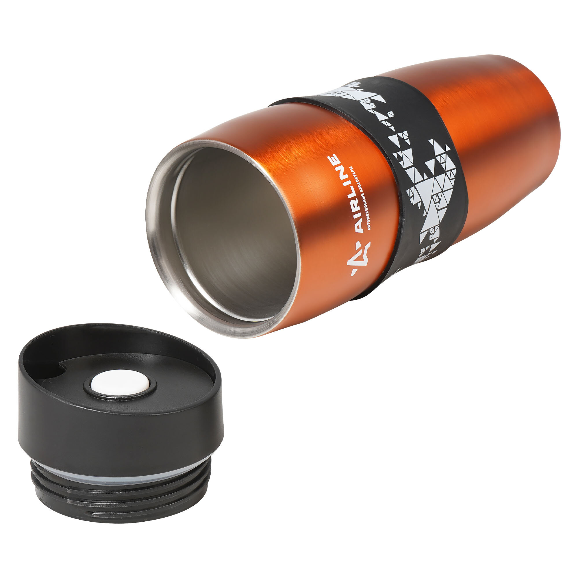 Термокружка непроливайка AIRLINE с клапаном, с резиновым настаканником, металлик, 380 мл