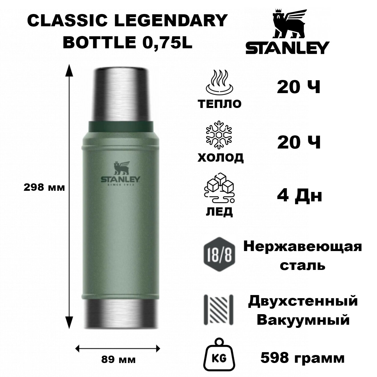 СохранитьКлассический Термос 0,75 литра Зеленый маркировки Stanley интересное: