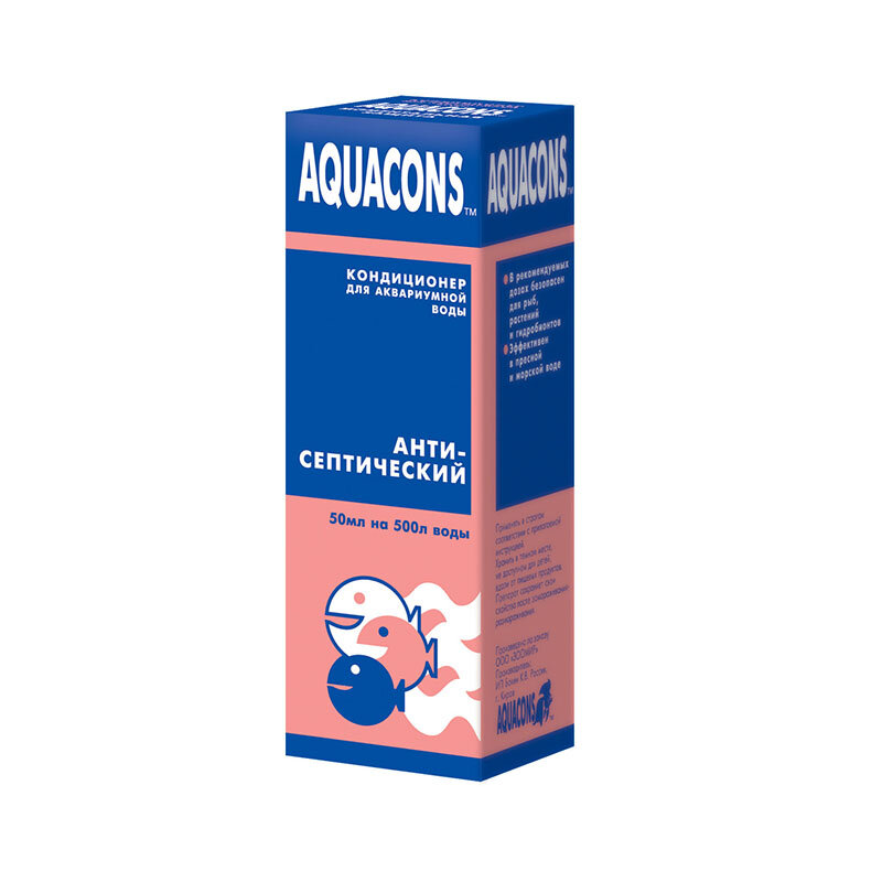 Кондиционер Aquacons для аквариумной воды антисептический, 50 мл